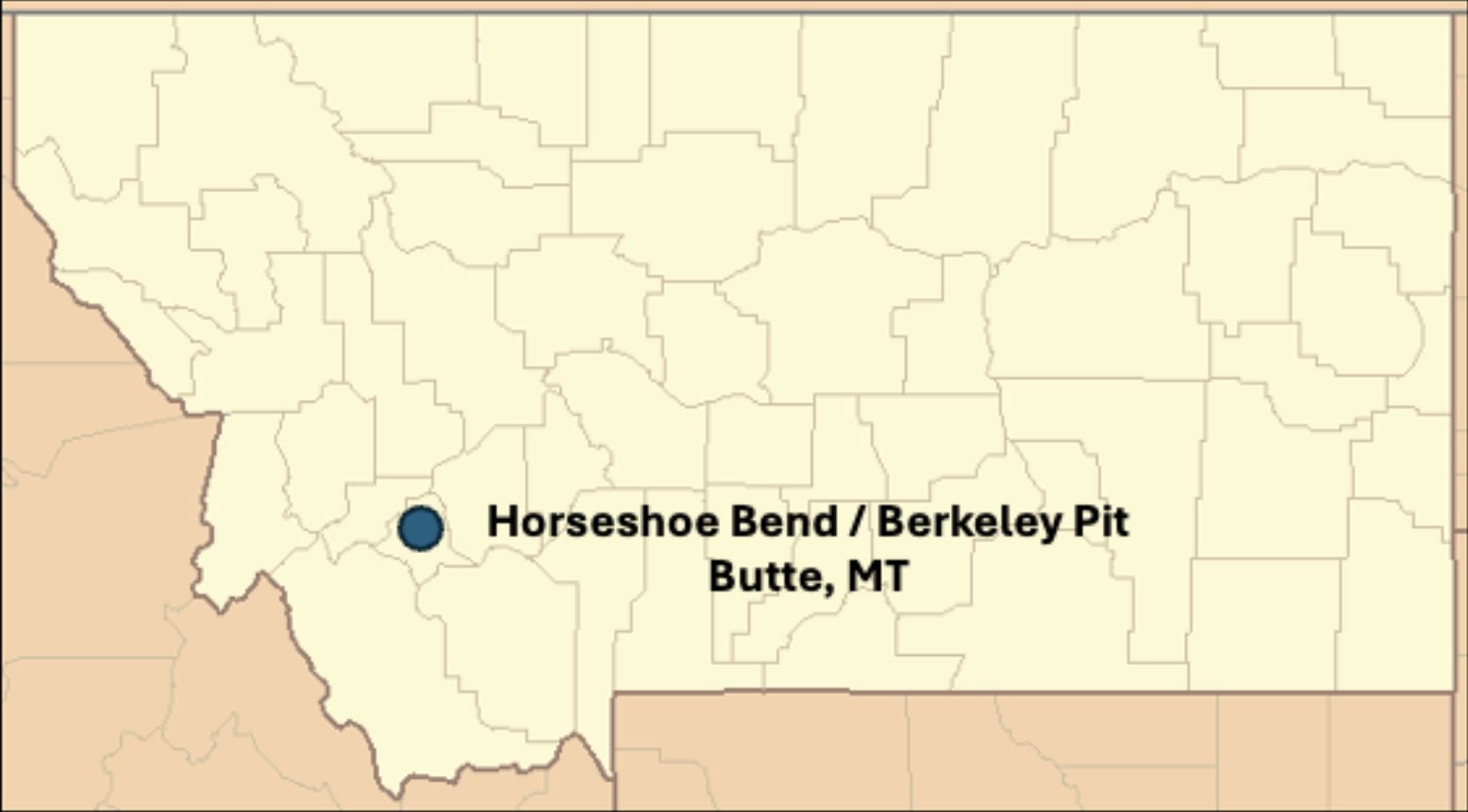 Butte, Montana (Figure 1) has a long history of hard-rock mining, leaving behind significant volumes of acidic, metal-bearing water requiring perpetual management. The Berkeley Pit and surrounding mine workings are among the most prominent examples of this legacy and are regulated under the U.S. Environmental Protection Agency’s Superfund program.
